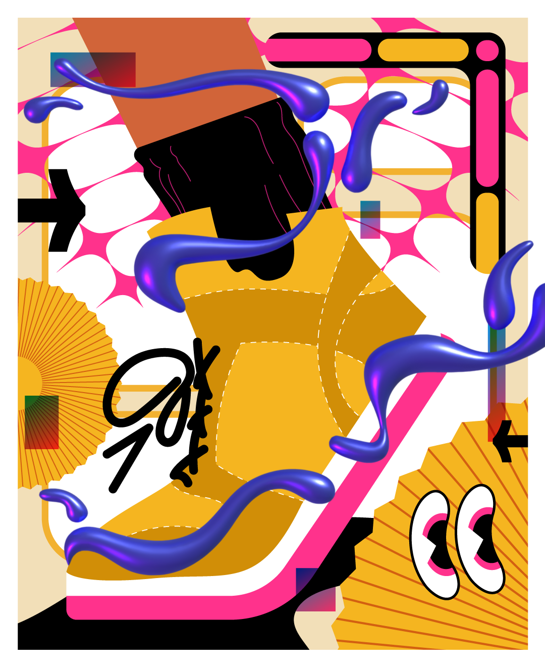 Illustration style experiment with patterns and layouts.